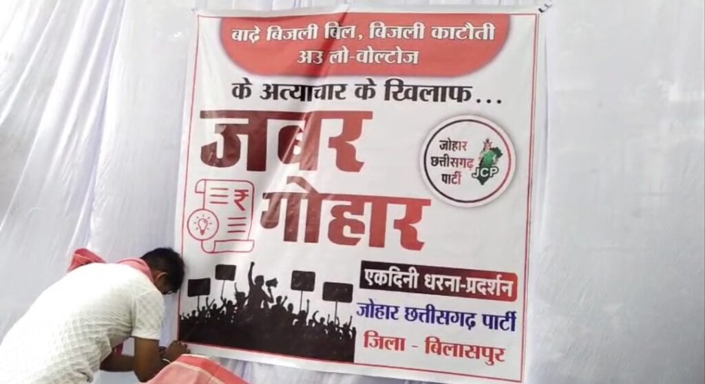 बिलासपुर ज़िले में आज बिजली बिल की बढ़ती दरों के खिलाफ जोहर छत्तीसगढ़ पार्टी ने एक दिवसीय धरना देकर सरकार के खिलाफ मोर्चा खोला।धरना प्रदर्शन की शुरुआत छत्तीसगढ़ महतारी की पूजा-अर्चना कर की गई।पार्टी के सदस्यों ने कहा कि प्रदेश में इस समय बिजली के दाम आसमान छू रहे हैं। जनता हर महीने बढ़ते बिलों से परेशान है,