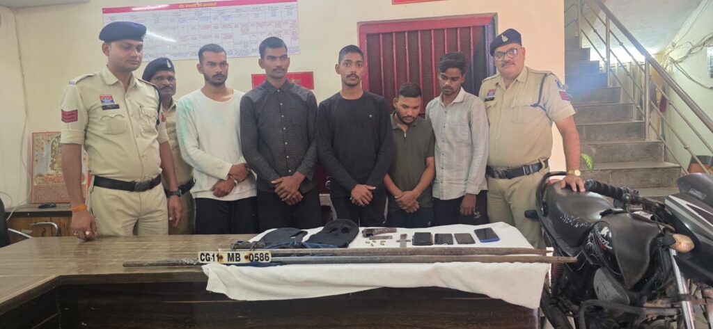 जांजगीर,,, बीती रात शहर में डकैती का प्रयास कर रहे पांच आरोपियों को जांजगीर पुलिस ने घेराबंदी कर गिरफ्तार किया है! पकड़े गए आरोपियों के पास से हथियार, औजार और घटना में प्रयुक्त बाइक जब्त की गई है! सभी को न्यायिक हिरासत में भेज दिया गया है!