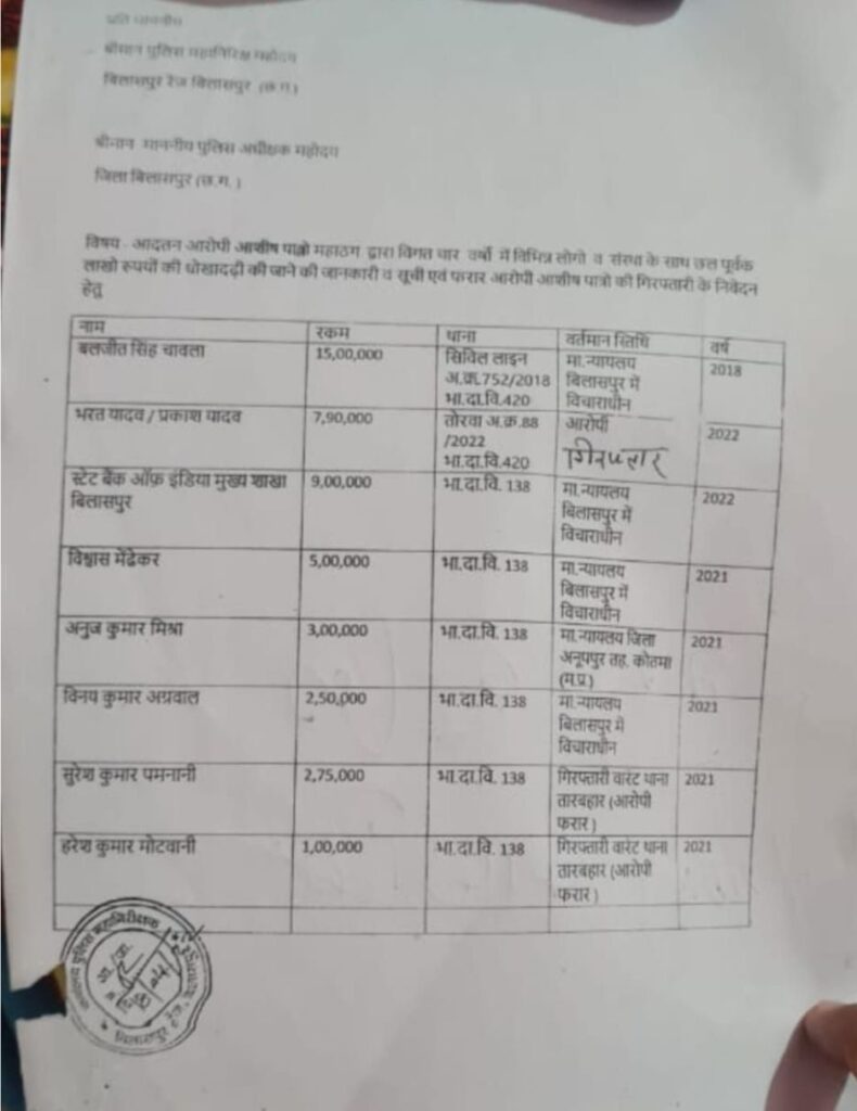 बिलासपुर के कई थाने सिविल लाइन,तारबाहर,तोरवा सहित दूसरे जिले में कई मामले दर्ज हैं और आरोपी के खिलाफ न्यायालय में भी कई संगीन मामले विचाराधीन है,