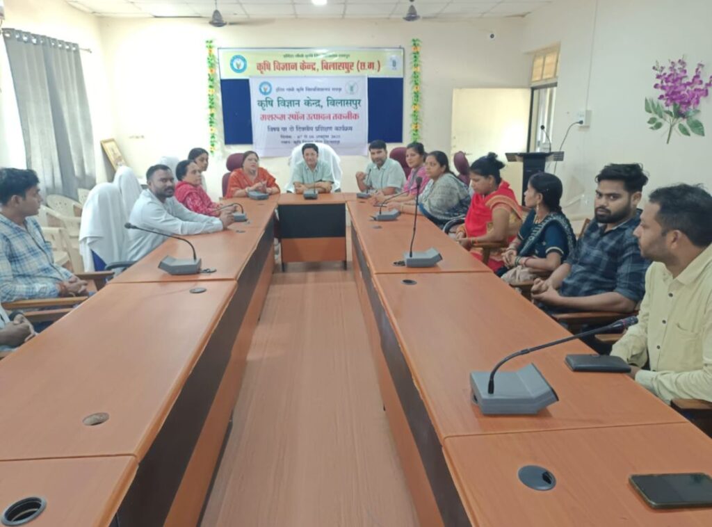 बिलासपुर,,,, कृषि विज्ञान केंद्र बिलासपुर के वरिष्ठ वैज्ञानिक एवं प्रमुख डॉ गीत शर्मा के मार्गदर्शन में दो दिवसीय प्रशिक्षण का आयोजन किया गया! इस दो दिवसीय प्रशिक्षण कार्यक्रम के दौरान मशरूम स्पॉन उत्पादन से संबंधित विभिन्न विषयों जैसे शुद्ध कल्चर एवं व्यावसायिक मशरूम स्पॉन उत्पादन, प्रयोगशाला में विभिन्न उपकरणों का उपयोग एवं सावधानियां, मशरूम स्पॉन इकाई के लिए उद्यमिता के अवसर और लागत लाभ विश्लेषण इत्यादि पर तकनीकी एवं प्रायोगिक प्रशिक्षण प्रदान किया गया!