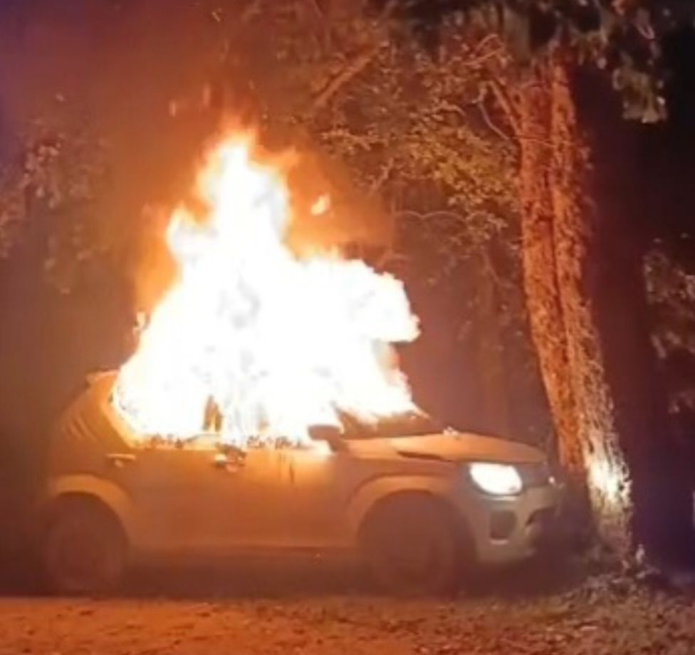 बिलासपुर,,, बिलासपुर जिले से एक दिल दहला देने वाला मामला सामने आया है! जहां देर रात एक दर्दनाक सड़क हादसा होते-होते बड़ा हादसा टल गया! तेज रफ्तार से दौड़ रही कार अचानक सड़क किनारे पेड़ से जा टकराई! टक्कर इतनी जोरदार थी! कि कार के अगले हिस्से के परखच्चे उड़ गए… और कुछ ही पलों में वाहन में भीषण आग लग गई! देखते ही देखते आग ने पूरी कार को अपनी चपेट में ले लिया और कार जलकर पूरी तरह खाक हो गई!