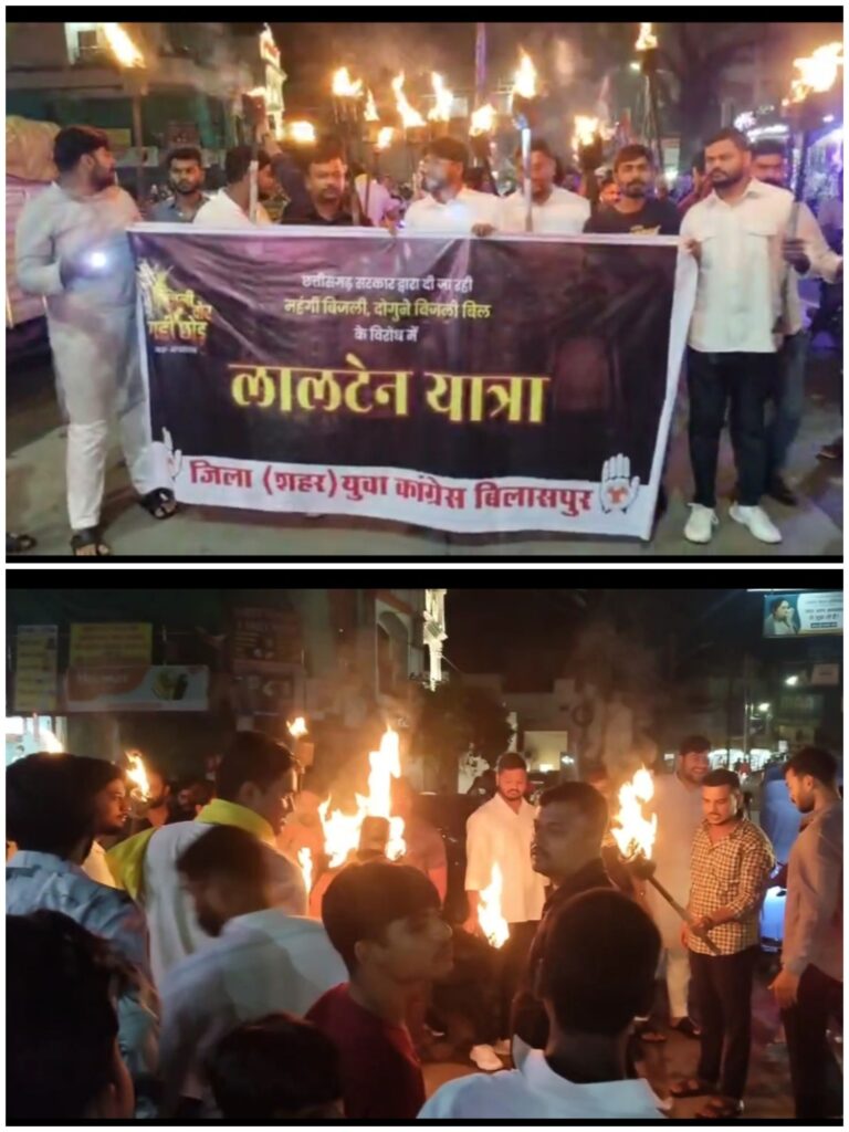 बिलासपुर,,,, जिले में लगातार बढ़ते बिजली बिलों के खिलाफ शहर की युवा कांग्रेस सड़कों पर उतर आई है। महंगे बिजली बिलों से परेशान आम जनता की आवाज़ बनकर युवा कांग्रेस ने मशाल और टॉर्च लेकर जोरदार रैली निकाली।