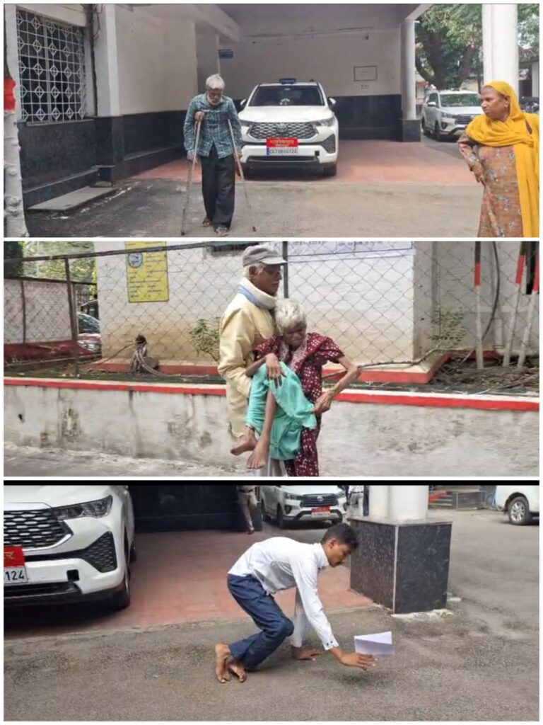 बिलासपुर,,, जिले में प्रशासनिक व्यवस्था किस तरह से चरमराई हुई है! इसका अंदाजा इसी से लगाया जा सकता है! कि, जनदर्शन के दिन कलेक्टर के पास फरियाद लेकर कलेक्ट्रेट पहुंचने वाले दिव्यांगजनो को घसीट घसीट कर चलना पड़ रहा है! दरअसल आज जिस तरह की तस्वीर आज बिलासपुर कलेक्ट्रेट से निकलकर आई है! वह झकझोर देने वाली है!