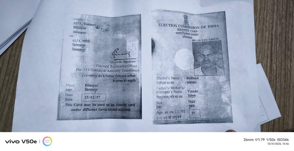 बिलासपुर,,,, जिला कांग्रेस कमेटी के अध्यक्ष व बेलतरा के छाया विधायक विजय केशवानी ने कांग्रेस और चुनाव आयोग पर वोट चोरी कर कांग्रेस की जीत चुराने के साजिश का आरोप लगाया है! इस दौरान उन्होंने ग़तौरी के राधे लाल नामक कांग्रेस के कार्यकर्ता और वोटर को भी मंच पर पेश किया और बताया कि ये वही राधे लाल खरे है! जिन्हें मृत बताकर उनका नाम मतदाता सूची से डिलीट कर दिया… इसके साथ ही उन्होंने ऐसे 51 मतदाताओं की सूची जारी कि जिसमें उनकी उम्र 100 से 121 साल दर्ज है! वे शहर के एक होटल में पत्रकारों से चर्चा की…