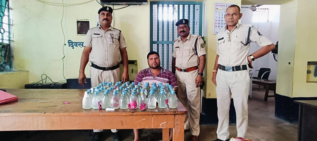 इसी परिप्रेक्ष्य मे 01 मई की शाम थाना प्रभारी नरेश कुमार चौहान थाना बिल्हा मुखबिर की सूचना पर टीम गठित कर आरोपी भागवत प्रसाद कोसले पिता रामखिलावन कोसले ग्राम परसदा थाना बिल्हा बिलासपुर को घेराबंदी कर पकडा गया आरोपी के कब्जे से एक हल्का पीले रंग के प्लास्टिक बोरी के अंदर 90 नग देशी प्लेन शराब एवं एक ट्रायसायकल मोटर सायकल क्रमांक CG 10 BQ 3827 को जप्त कर आबकारी एक्ट के तहत कार्यवाही किया गया है। उक्त कार्यवाही में बिल्हा पुलिस का विशेष योगदान रहा।
