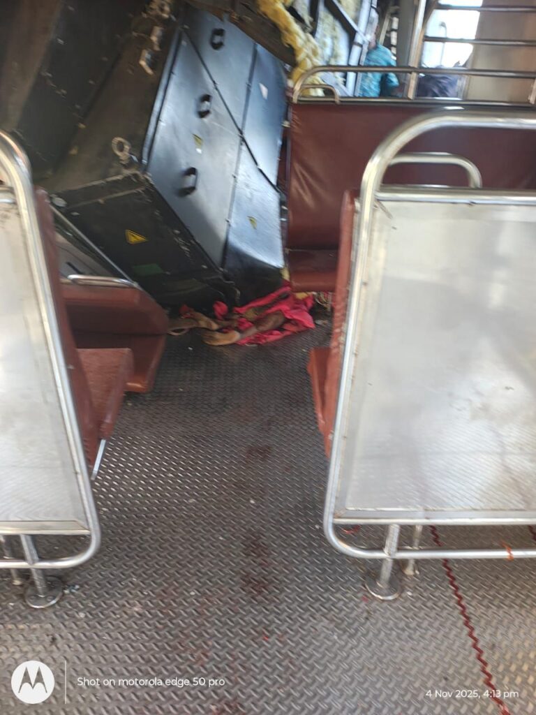इस हादसे की बड़ी दर्दनाक तस्वीरे सामने आई है! जिसमे ट्रेन की बोगी के अंदर एक महिला सीट और दराज के नीचे दबी वहीं एक युवक पटरी के किनारे पड़ा दिखा! वही एक घायल युवती को बोगी से उतारने व एक घायल युवती को उतारकर ले जाते तस्वीरें सामने आई है…!