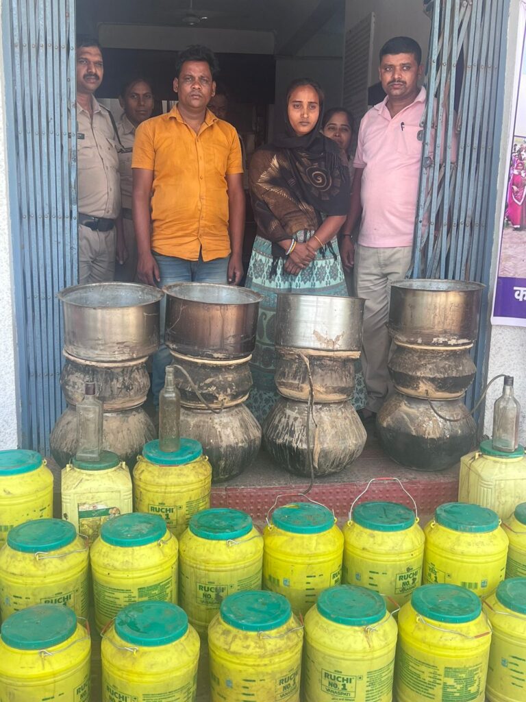 बिलासपुर पुलिस अधीक्षक रजनेश सिंह (भा.पु.से.) के द्वारा जिले में नशे के व्यापारियों पर अंकुश लगाने हेतु चलाये जा रहे प्रहार अभियान के तहत लगातार कार्यवाही करने हेतु निर्देशित किया गया है। जिसके तहत अतिरिक्त पुलिस अधीक्षक महोदया (ग्रामीण) श्रीमती अर्चना झा एवं अनुविभागीय अधिकारी (पुलिस) कोटा श्री मति नुपूर उपाध्याय के मार्गदर्शन में थाना प्रभारी प्रशि. आईपीएस अजय कुमार के द्वारा टीम गठित कर मुखबीर सूचना पर ग्राम जाली में भारी मात्रा में अवैध शराब बनाने की सुचना पर रेड कार्यवाही की गई। ग्राम जाली निवासी दीपक कुमार नेताम ऊर्फ बाबा अपने घर के कमरे में तलघर बनाकर अपनी पत्नि पूजा नेताम के साथ शराब बनाते हुये पकड़ा गया। उनके मकान के तलघर से भारी मात्रा में कच्ची महुआ शराब व शराब बनाने के बर्तन व महुआ लहान मिला। पूछताछ करने पर उनके द्वारा शराब निर्माण कर दूर दूर के कई गॉवों में शराब सप्लाई कर बेचना पता लगा। उक्त शराब बनाने वाले दम्पत्ती से भारी मात्रा में शराब, महुआ लहान, व शराब बनाने के बर्तन को जप्त कर आरोपियों के विरूद्ध आबकारी एक्ट के तहत कार्यवाही कर उक्त आरोपियों को न्यायिक रिमाण्ड पर भेजा गया।