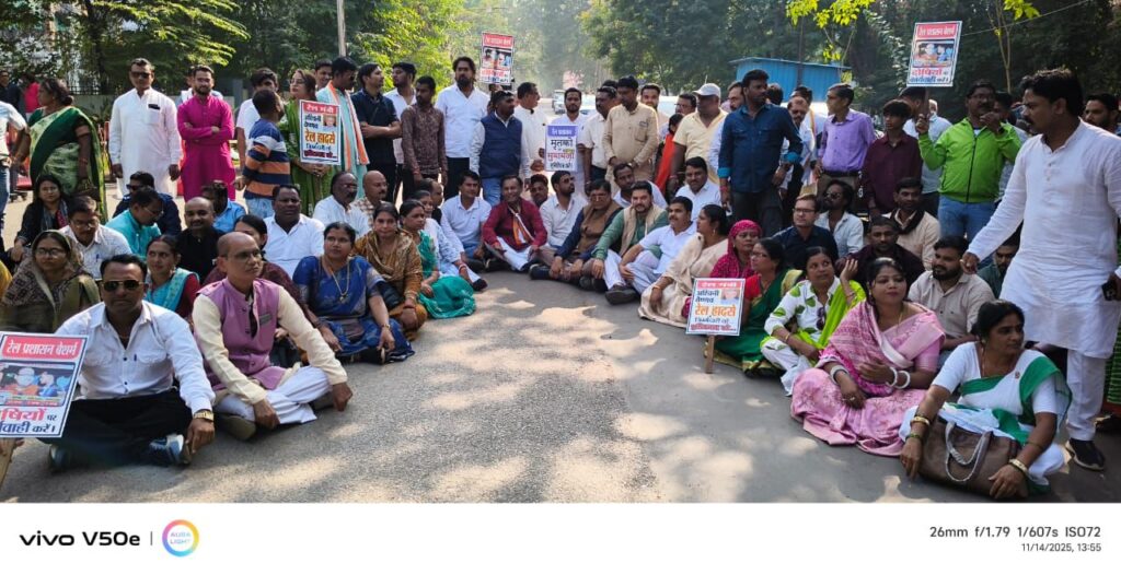 कांग्रेस जन गेट के सामने और गेट पर चढ़कर नारे बाजी करते रहे पर कोई रिस्पॉन्स नहीं मिला… इसके बाद कांग्रेस जन जीएम साहब बाहर आओ के नारे लगाते सड़क घेर कर चक्काजाम करने सड़क पर बैठ गए…. गला सुख गया, आवाज बैठ गई तब डीजीएम समीर कांत माथुर ज्ञापन लेने गेट से बाहर निकले और सड़क पर बैठकर कांग्रेस जनो की मांगे सुनी, कांग्रेस नेताओं ने मृतकों के परिजनों को 1_1 करोड़ नौकरी और घायलों को 50_50 लाख रुपए मुआवजा देने रेलवे क्षेत्र में होने वाले विभिन्न आयोजनों के लिए वर्ग फुट के हिसाब से होने अवैध वसुली को बंद करने की मांग की….