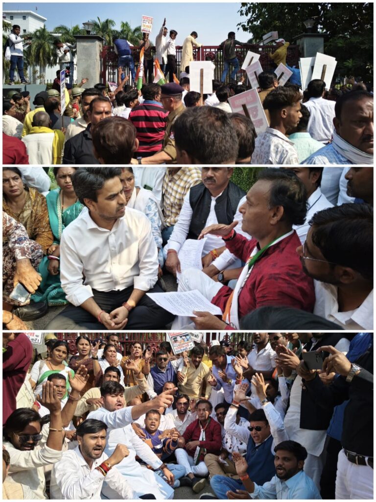 और जमकर नारेबाजी करने लगे… पुलिस वाले ने जब लाठियां दिखाई करीब आधा दर्जन कांग्रेसी पुलिस वाले से भीड़ गए…