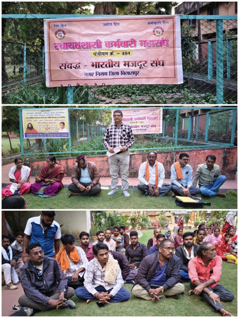 बिलासपुर,,, नगर निगम के स्वायत शासी कर्मचारी संघ की बैठक में जोनल व्यवस्था के बाद बिगड़े हालात,कर्मचारियों को प्रताड़ित कर उन्हें 2 से 3 माह के पारिश्रमिक से वंचित करने, कोर्ट के फैसले और शासन के आदेश के बाद भी स्वछता दीदियों के भविष्य निधि से हो रहे खिलवाड़ को रोकने का मुद्दा गंभीर रूप से छाया रहा! संघ ने इन मांगों को लेकर निगम आयुक्त को ज्ञापन सौंपने और इसके बाद भी मांग पूरी न होने पर आंदोलन करने का निर्णय लिया गया!