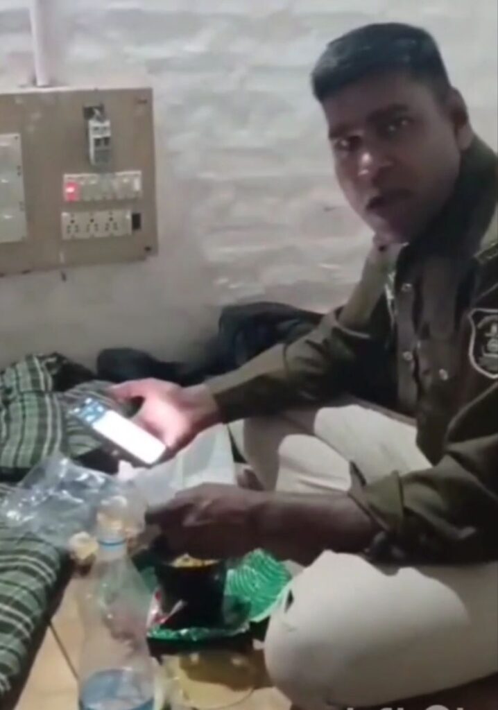 गुरुवार रात जब युवक चौकी में पहुंचा तो सामने पूरी तरह खाली था!अंदर में जवान शराब पीते हुए नजर आए! इसे देख युवक ने अपने मोबाइल पर वीडियो बनाना शुरू कर दिया! इसे देख आरक्षक ने मोबाइल छीन लिया! इसके बाद आरक्षक ने युवक को धमकियां देनी शुरू कर दी! जहां पहले तो युवक के साथ गाली गलौज की फिर उसे पटक पटक कर मारने की धमकी दे डाली…