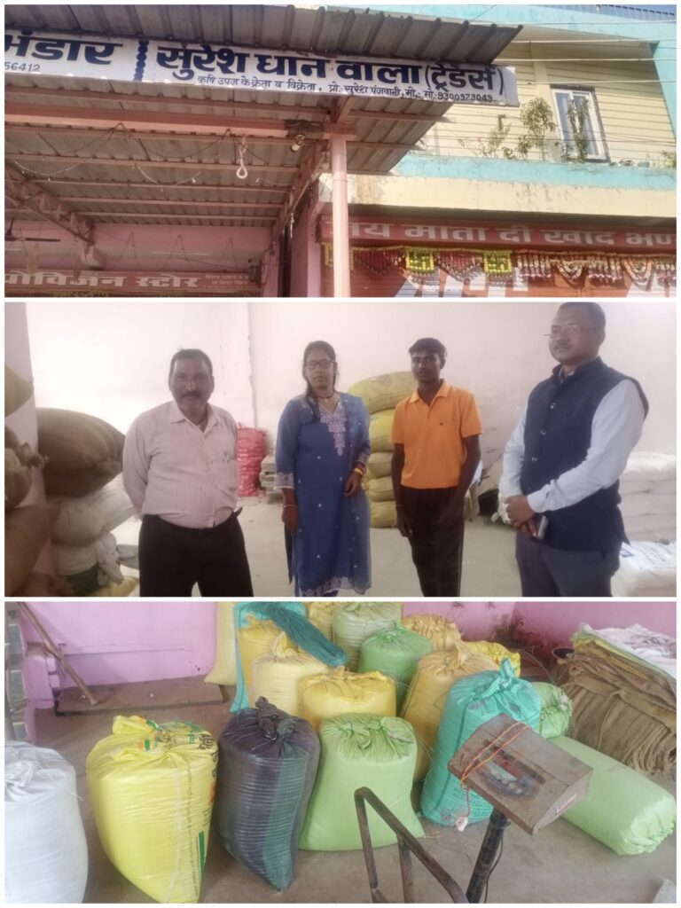 एसडीएम बिल्हा के मार्गदर्शन में व्यापारी सुरेश पंजवानी धान वाला के कब्जे से अवैध रूप से रखे हुए 75 कट्टी धान जब्त किया गया! जब्त किए धान की मात्रा लगभग 30 क्विंटल है। सरकारी कीमत 1 लाख से ऊपर का है। धान का कोई हिसाब और दस्तावेज व्यापारी जांच टीम को नहीं दे पाया! इसे सांठगांठ करके किसी सोसाइटी में खपाने की आशंका थी! इसके पहले ही बरामद कर लिया गया! मंडी अधिनियम के तहत कार्रवाई की गई! कार्रवाई में तहसीलदार बोदरी, खाद्य निरीक्षक और मंडी के कर्मचारी शामिल थे!