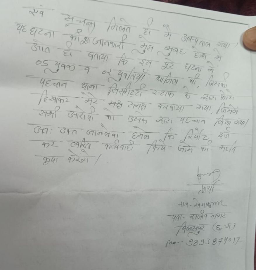 आयुष यादव, पिता धर्मेंद्र यादव, उम्र 20 वर्ष, निवासी मोपका विवेकानंद नगर थाना सरकण्डा, बिलासपुर