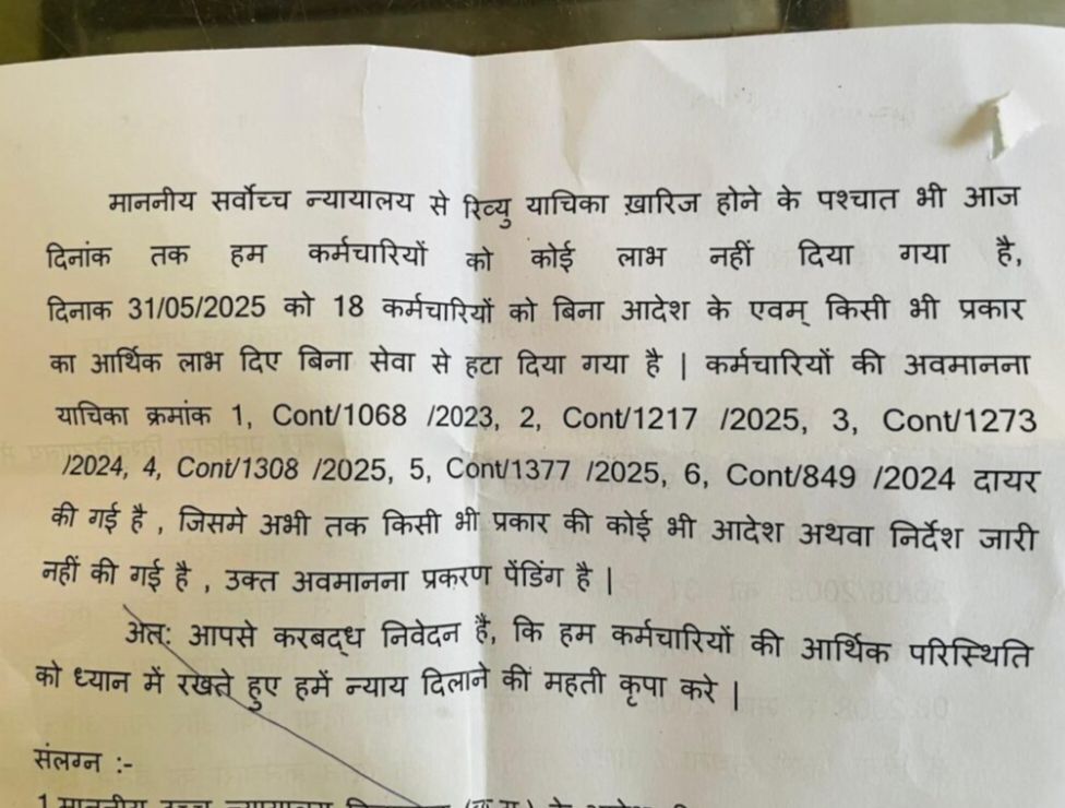 कर्मचारियों ने बताया कि हाईकोर्ट के आदेश के बाद गुरु घासीदास सेंट्रल यूनिवर्सिटी ने मामले को लेकर सुप्रीम कोर्ट में रिव्यू याचिकाएं (34499/2024 एवं 31573/2024) दायर कीं, जिसे सुप्रीम कोर्ट ने 12 फरवरी 2025 को निरस्त कर दिया। इसके बावजूद कर्मचारी आज तक नियमितीकरण और आर्थिक लाभ से वंचित हैं। यूनिवर्सिटी प्रबंधन शीर्ष न्यायालयों के आदेश तक की अवहेलना कर रही है, जिससे कर्मचारी परेशान हैं।