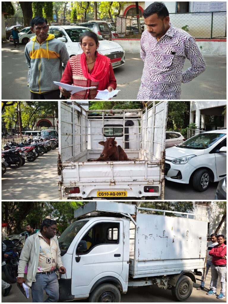 पीड़ित गाय को गाड़ी में लेकर कलेक्ट्रेट पहुँची वंदना ने बताया कि उनकी गाय के पेट में बच्चा फंसा हुआ है! गाय कमजोर होने के कारण बच्चा देने में असमर्थ है! जिसको वे शुक्रवार सुबह 9 बजे जिला पशु चिकित्सालय लेकर उपचार गई!