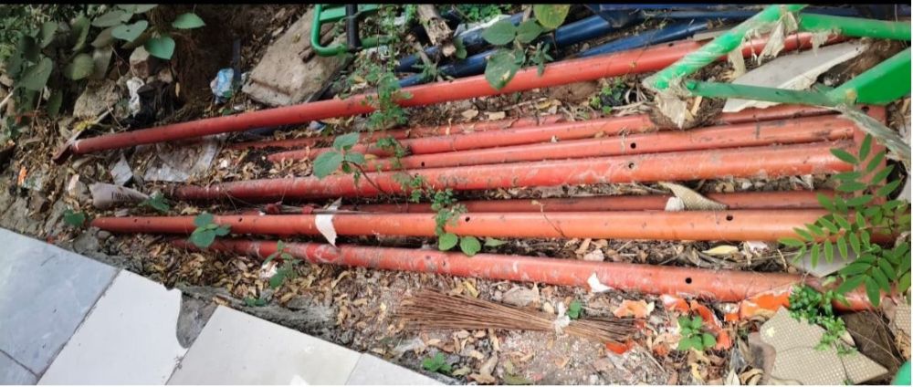 अब इस दूसरी तस्वीर को देख लीजिए ये बिजलीं के आर्टिफिशियल खम्भे है! जिन्हें सड़क के बीचो बीच डिवाइडर पर लगाने खरीदा गया था! पर नया टेंडर हुआ नया स्टीमेट बना तो फिर नए खरीद लिए गए इन खम्भो को कबाड़ बनाने पम्प हाउस में झाड़ियों के बीच डंप कर रख दिया गया…?