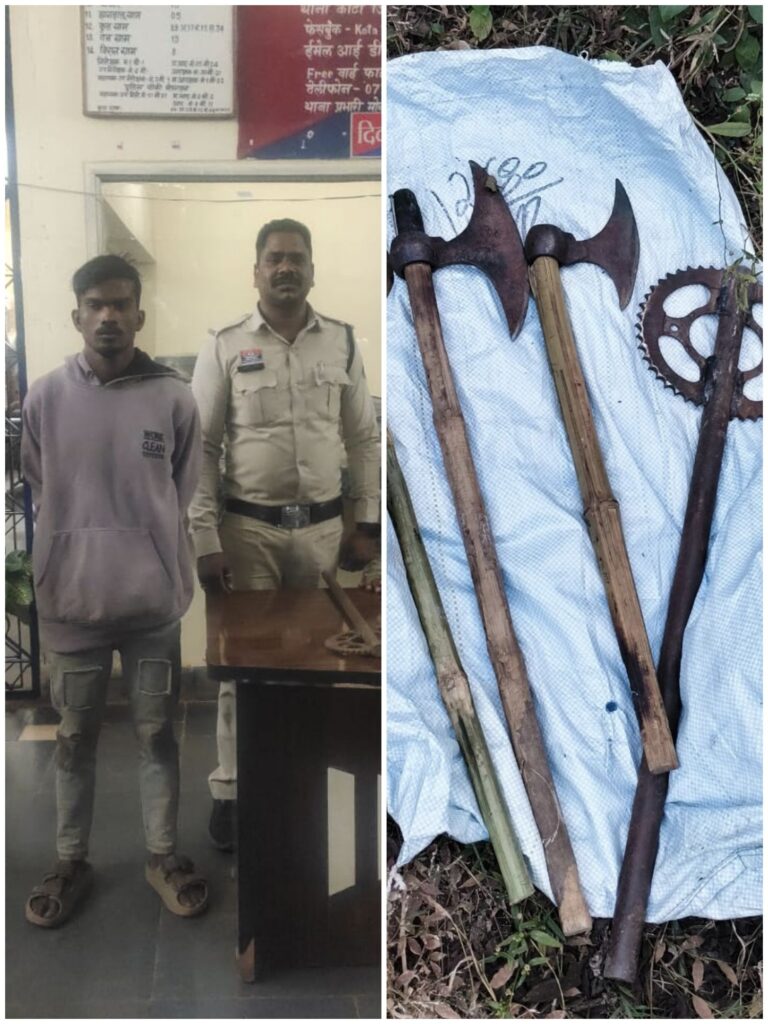 पुलिस ने घेराबंदी कर आरोपी चांद खान (21 वर्ष), निवासी पड़ाव पारा, कोटा को धान मंडी के पास से गिरफ्तार किया… पूछताछ में आरोपी ने अपराध स्वीकार किया, जिसके बाद उसके मेमोरेंडम कथन पर दोमुंहा तबली, लोहे का पाइप, चैन स्प्रोकेट सहित अन्य घातक हथियार बरामद किए गए!