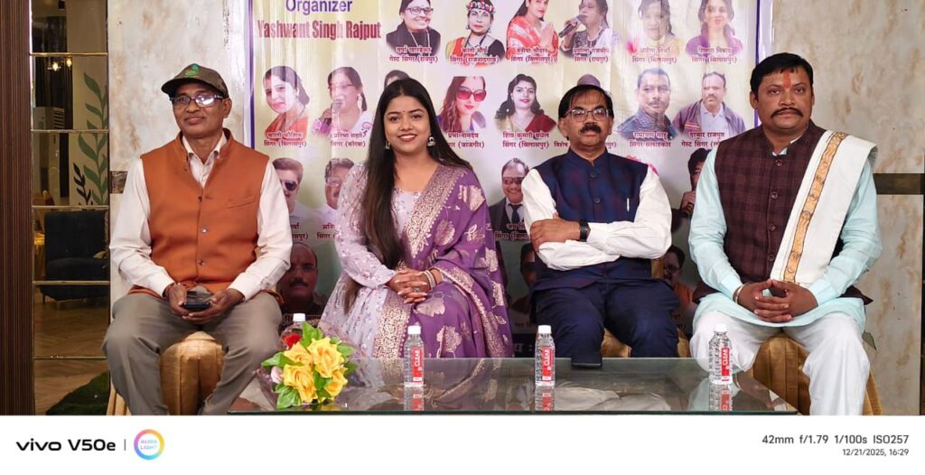 बिलासपुर,,, एसएमजी श्रद्धा म्यूजिकल ग्रुप द्वारा रविवार को मेलोडी विब्स द्वारा अरपा पार सीपत चौक के एक होटल में सुर संध्या का आयोजन किया गया.. मंडल के 6 वे सीजन के आयोजन में हृदय बासुरी हो गई बिगड़ा सुर का राग अधरों पर आया नही अंतस का अनुराग गीत की प्रस्तुति देकर गीतकार सागर कुमार मिश्रा ने समा बांध दिया! वही रामायण साहू ने नीले नीले अम्बर पर… गीत पर अपनी प्रस्तुति देकर उपस्थित जनसमूह की तालियां बटोरी!