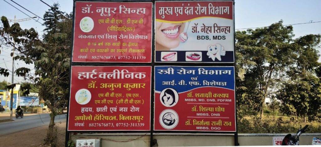 00 मोपका सीपत रोड पर शिवा हॉस्पिटल के सामने मुफ्त इलाज के दावे वाला पोस्टर…