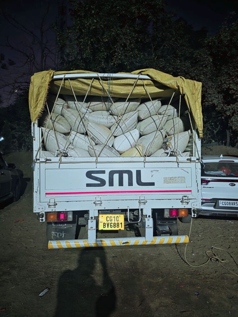 सूचना के अनुसार माजदा वाहन क्रमांक CG 10 BV 6881 ग्राम खरगहनी थाना कोटा से ग्राम तेंदु भाठा थाना रतनपुर की ओर जा रहा था! मामले की गंभीरता को देखते हुए वरिष्ठ अधिकारियों को अवगत कराया गया! उनके निर्देश पर थाना प्रभारी रतनपुर ने टीम गठित कर ग्राम बारीडीह मेन रोड पर घेराबंदी की और संदिग्ध वाहन को पकड़ा!