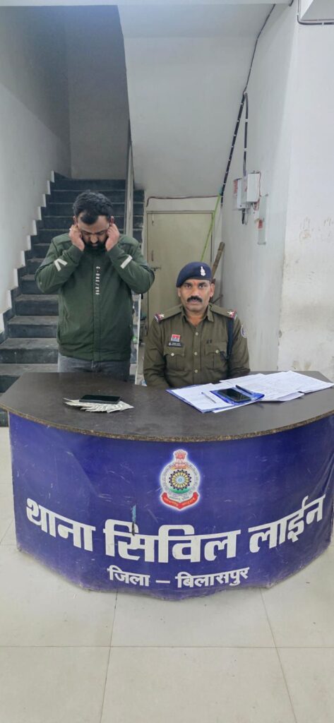 प्राप्त जानकारी के अनुसार 21 दिसंबर 2025 को सिविल लाइन पुलिस को मुखबिर से सूचना मिली थी! कि मनोज पोपटानी महाराणा प्रताप चौक के आसपास अपनी बलेनो कार में घूम-घूमकर मोबाइल फोन के जरिए क्रिकेट सट्टा खिला रहा है! सूचना की तस्दीक के बाद पुलिस टीम ने मौके पर घेराबंदी कर आरोपी को रोकने का प्रयास किया! पुलिस को देखकर आरोपी कार लेकर भागने लगा… जिसे पुलिस ने पीछा कर पकड़ लिया गया…