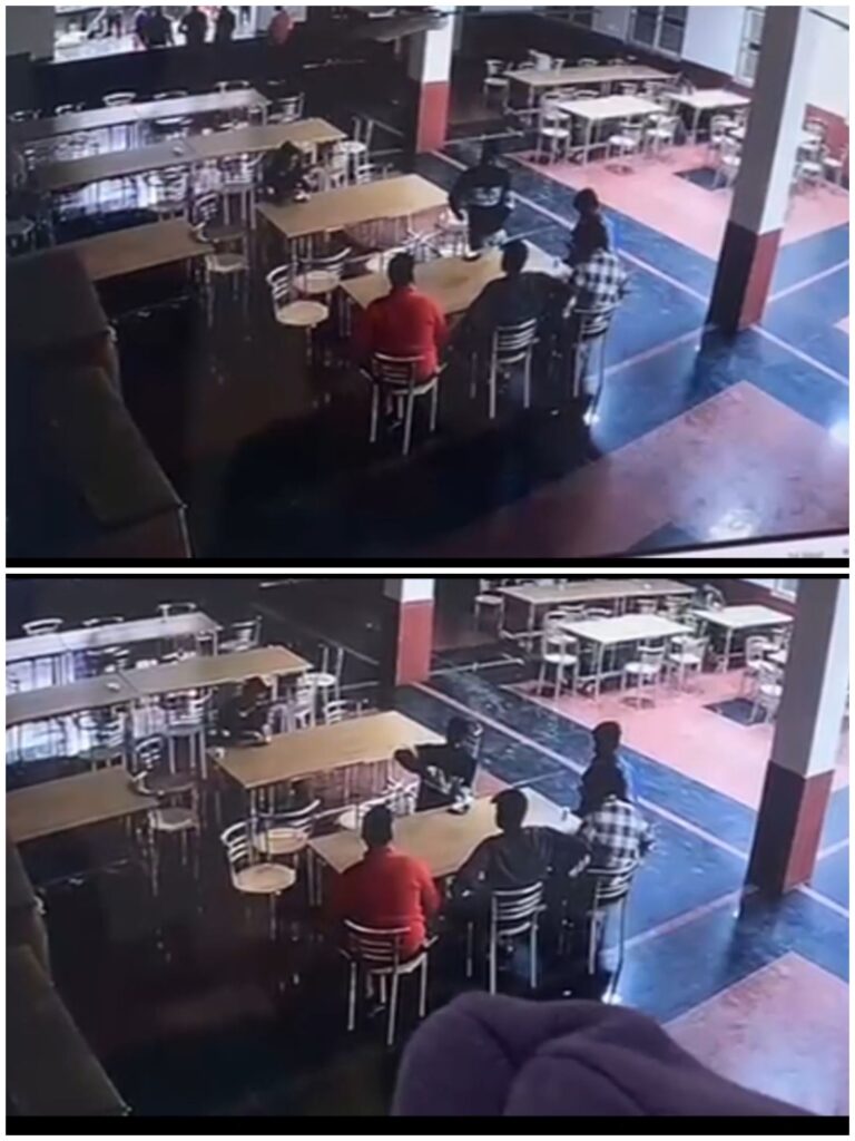 फुटेज में साफ दिख रहा है! कि रसोइया किचन प्लेटफॉर्म फांदकर छात्र की ओर दौड़ता है! और उसके हाथ में चाकू भी नजर आ रहा है!दूसरे कैमरे में गैलरी में छात्र और रसोइए के बीच मारपीट होती दिखती है! जिसमें अन्य छात्र भी हस्तक्षेप करते नजर आते हैं!