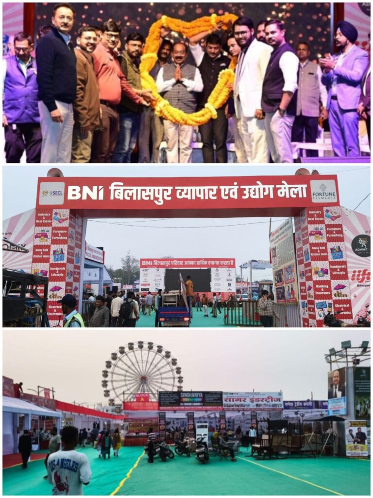 सीपत रोड के साइंस कॉलेज मैदान में गुरुवार शाम उपमुख्यमंत्री अरुण साव, बेलतरा विधायक सुशांत शुक्ला, महापौर पूजा विधानी सहित अनेक जनप्रतिनिधि, उद्योगपति एवं सामाजिक संगठन के पदाधिकारियो की मौजूदगी में अतिथियों ने दीप प्रज्वलन कर मेले का शुभारंभ किया… 6 फरवरी तक चलने वाले इस व्यापार एवं उद्योग मेले में व्यापार, नवाचार और मनोरंजन का अद्भुत आयोजन होंगा B.N.I बिलासपुर का उद्देश्य इस मेले के माध्यम से बिलासपुर को राष्ट्रीय स्तर पर एक सशक्त बिज़नेस और इवेंट डेस्टिनेशन के रूप में स्थापित करना है!