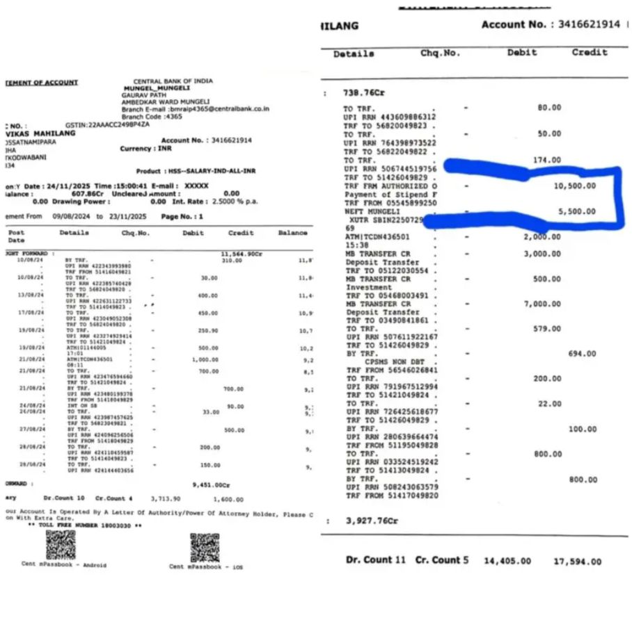 जांच में यह भी सामने आया है! कि विकास महिलांग ने अपने दस्तावेजों का उपयोग कर अपने भाई सुरेश महिलांग को सेन्ट्रल बैंक ऑफ इंडिया में कार्य पर लगवाया आरोप है!