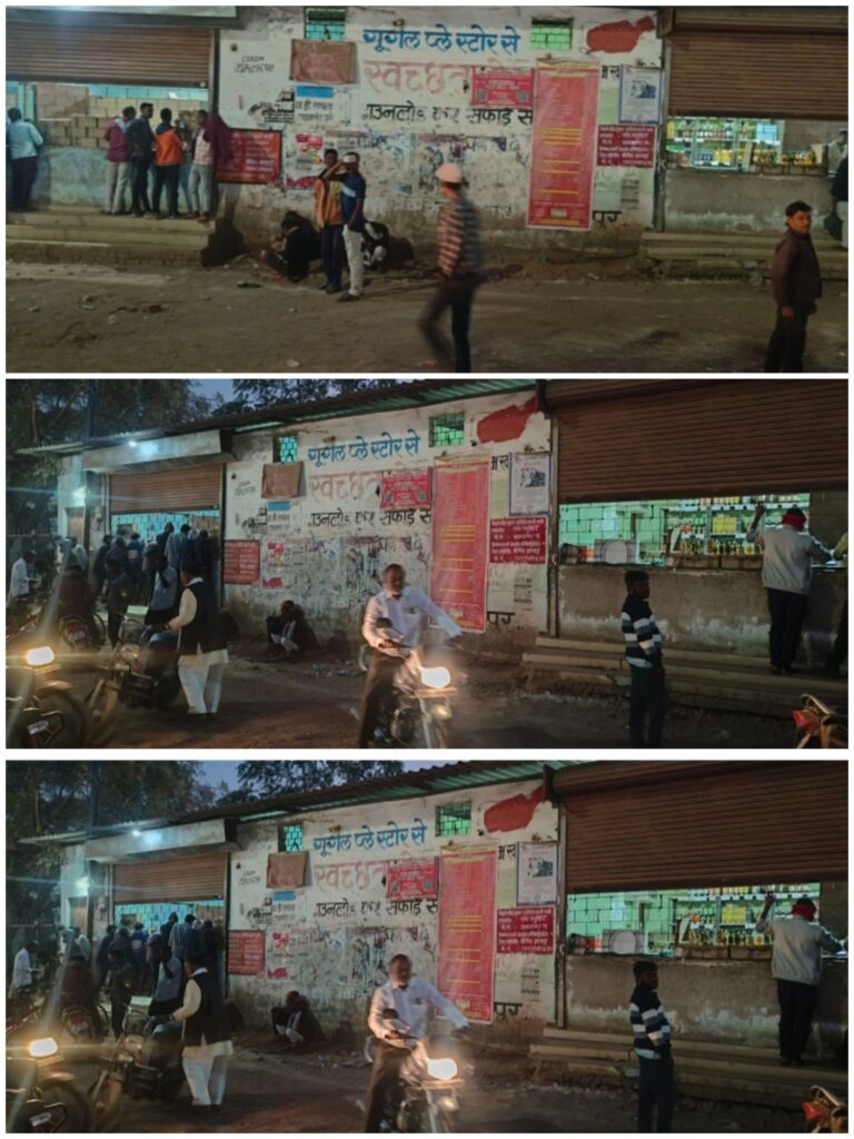 आप खुद देखिये ये तस्वीरें और वीडियो फुटेज चाँटीडीह सब्जी मंडी के सामने देशी- विदेशी मदिरा दुकान की है… जहा खुलेआम शटर खोलकर शराब बेची जा रही…!