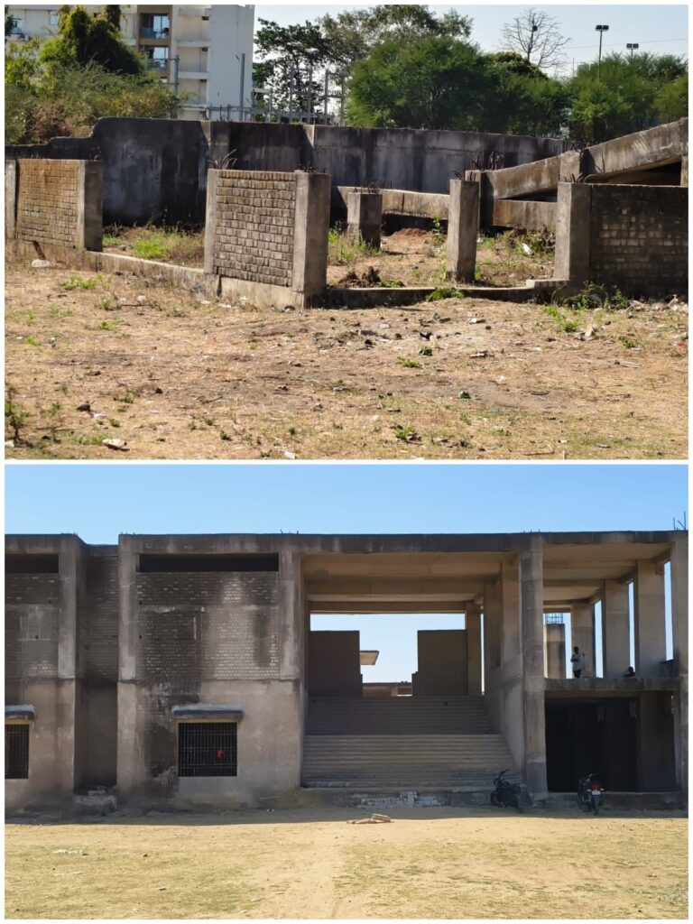 निगम प्रशासन ने इस मैदान परिसर को दिल्ली के प्रगति मैदान के तर्ज पर विकसित करने का दावा किया था! पर दुर्गति मैदान बनाकर छोड़ दिया… जिसका उदाहरण ये मैदान के एक छोर पर निर्मित और जर्जर स्टेज है!