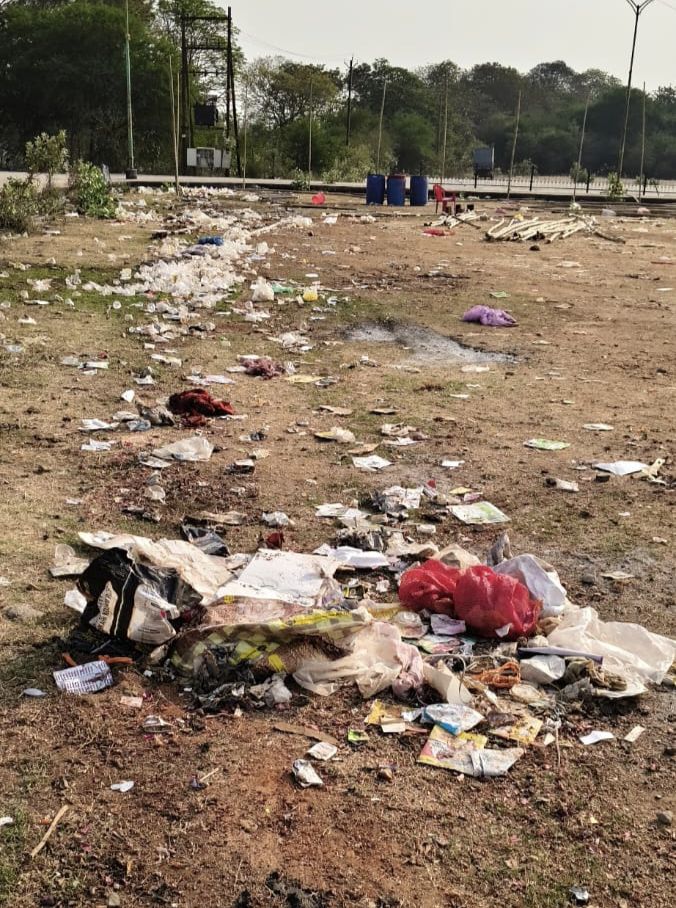 गन्दगी से अटे पड़े साइंस कॉलेज मैंदान का जहां गत 29 जनवरी से 3 फरवरी तक बी एन आई द्वारा उद्योग व्यापार मेले का आयोजन किया गया था! मेले के आयोजन के बाद पूरा मैदान पॉलिथीन के चीथड़ों और गन्दगी से अटा पड़ा है! करोड़ो का कारोबार हुआ आयोजको और नेताओं ने स्वछता को लेकर खूब भाषण झाड़े आयोजन की सराहना की पर आखिर में कचरा-कचरा रह गया…👇👇👇