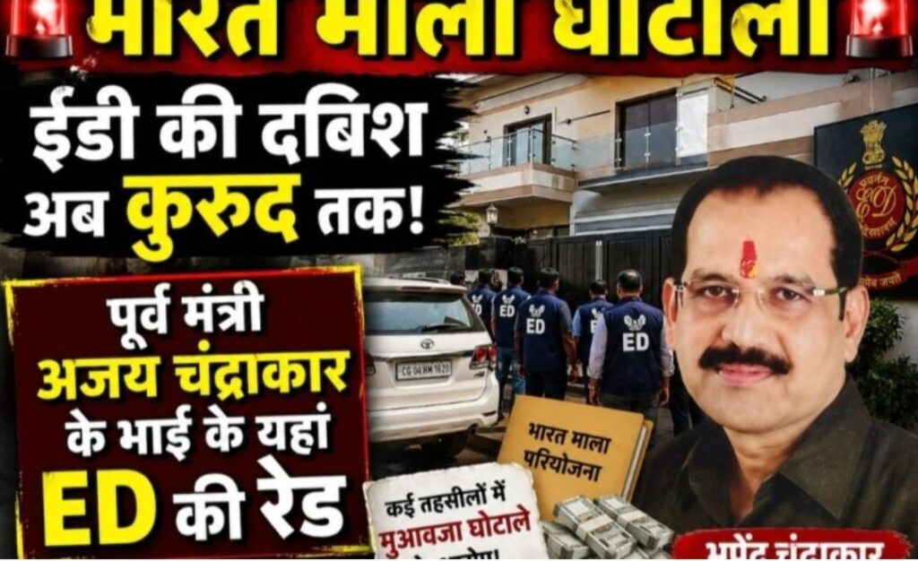Uncategorized2026.04.27भारत माला घोटाला में ईडी की दबिश कुरुद तक पहुंची, चंद्राकार कनेक्शन पर छापा, मुआवजा खेल में करोड़ों की गूंज, कई तहसीलों में जांच तेज, सुबह-सुबह रेड से मचा हड़कंप, बड़े खुलासों की आहट, सियासत में भी हलचल तेज हुई अब…