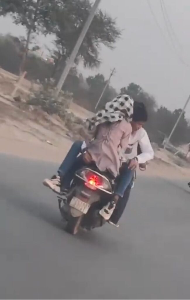 सबसे चौंकाने वाली बात यह है! कि चलती स्कूटी पर एक कपल खुलेआम रोमांस करता नजर आ रहा है! जबकि तीसरा युवक वाहन चला रहा है! इस दौरान तीनों ने न तो हेलमेट पहन रखा है! और न ही किसी तरह के ट्रैफिक नियमों का पालन किया जा रहा है! व्यस्त सड़क पर इस तरह की हरकतें न केवल उनकी अपनी जान के लिए खतरा हैं! बल्कि अन्य राहगीरों के लिए भी गंभीर दुर्घटना का कारण बन सकती थीं…!