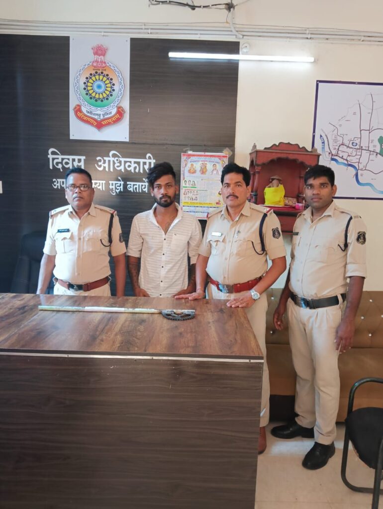 मामले का संक्षिप्त विवरण इस प्रकार है कि 23.अप्रैल.2024 को शिवराज यादव पिता बहोरिक यादव रानी दुर्गावती वार्ड क. 58 पटेल मोहल्ला खमतराई ने सरकंडा थाने में आकार रिपोर्ट दर्ज कराया कि 23.अप्रैल.2024 के शाम करीब 07.00 बजे हनुमान जन्मोत्सव के अवसर पर भोग प्रसाद लेने अपने साथियों के साथ निकला था। हुण्डई चौक के पास रिवर व्यू तरफ जाने वाले रोड पर एक मिनी ट्रक में डीजे लगाकर करीब 25-30 लोग फिल्मी गाना बजाते हुये रास्ता घेरकर नाच रहे थे। हाथ में फरसा रखे हुए थे और अपने साथियों के एक दूसरे के पीठ पर चकड़कर रास्ता घेरकर हिन्दू देवी देवताओं को अश्लील गाली गलौथ करते हुये हिन्दू धर्म के लोगों के धार्मिक भावनाओं को भड़का रहे थे। आते जाते हुये लोगों को रास्ता पार करने नहीं दे रहे थे। लोगों से वाद-विवाद कर आम लोगों को हथियार दिखाकर डरा धमका रहे है। जिसमें इसब अली, जाबाज अली, आफिस खान, सुधीर बेलदार, शाहरूख, अमन सोनकर शामिल है। रिपोर्ट पर अपराध कायम कर विवेचना में लिया गया। प्रकरण की गंभीरता को देखते हुये घटना की सूचना तत्काल वरिष्ठ अधिकारियों को दी गई। पुलिस अधीक्षक रजनेश सिंह (भापुसे) ने आरोपियों को धरपकड़ कर गिरफ्तार करने निर्देश दिए। निर्देश मिलते ही अतिरिक्त पुलिस अधीक्षक शहर बिलासपुर उमेश कश्यप एवं सीएसपी (सरकडा) सिद्धार्थ बघेल के मार्गदर्शन एवं दिशा निर्देशन में सरकण्डा थाना प्रभारी तोप सिंह नवरंग के नेतृत्व में टीम बनाकर आरोपियों की पता तलाश किया गया। इसके बाद आरोपी शाहरूख खान व अन्य को 09.मई.2024 को गिफ्तार कर न्यायिक रिमाण्ड पर भेजा गया है। मामले के अन्य आरोपी घटना के बाद से फरार थे। जिनकी पतासाजी की जा रही थी कि आज 16.मई.2024 को मुखबीर से सूचना मिली कि आरोपी अमन सोनकर अपोलो चौक के पास घूम रहा है। सूचना पर टीम तत्काल मौके पर भेजा गया, जहां आरोपी अमन सोनकर की घेराबंदी कर पकड़ा गया। उसके कब्जे से धारदार फरसा जप्त कर आरोपी को विधिवत् गिरफ्तार कर न्यायिक रिमाण्ड पर भेजा गया है। आरोपी के खिलाफ थाना सरकंडा में धारा 147, 148, 149, 341, 295ए 153ए, भादवि 26, 27 आर्म्स एक्ट अपराध दर्ज है।