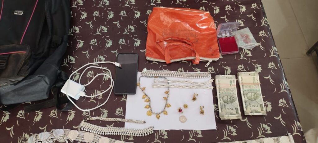 सोने चांदी के जेवर,एक मोबाइल, एवं नगदी रकम 79 हजार सहित कुल जुमला रकम 4 लाख 81 हजार का सामान किया गया बरामद