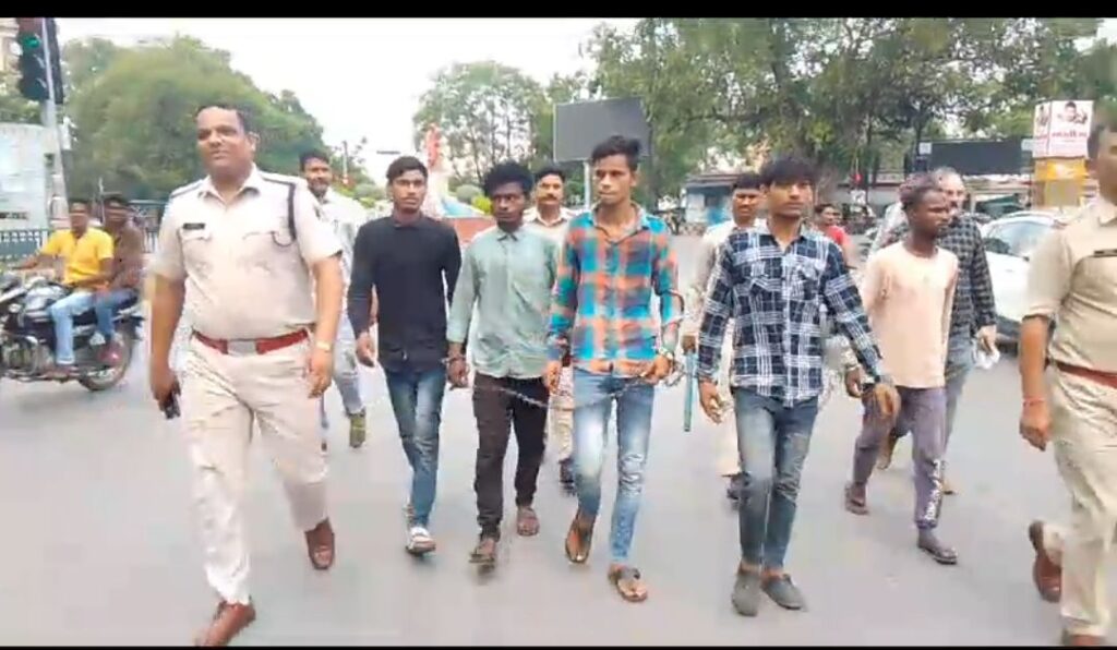 जिन्हें सिविल लाइन पुलिस ने गिरफ्तार कर लिया है,,सभी पकड़े गए आरोपियों के विरुद्ध पुलिस ने गंभीर धाराओं के तहत अपराध दर्ज करते हुए सभी आरोपियों का नेहरू चौक से लेकर जिला न्यायालय तक पैदल जुलूस भी निकाला।