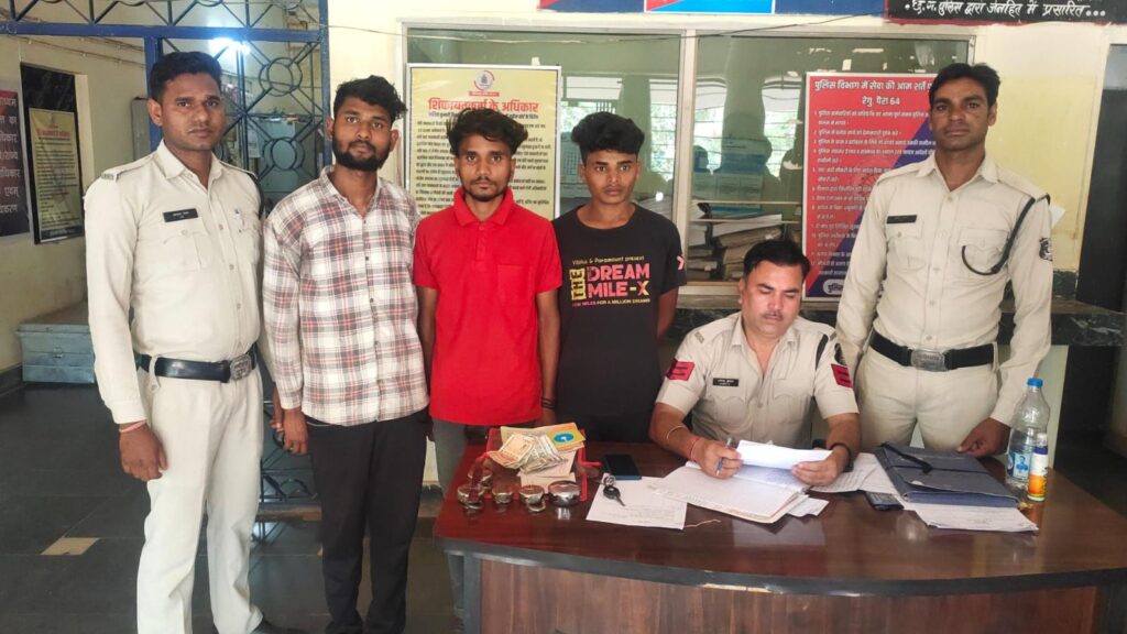 वजह सबूत के आधार पर आरोपीगण 01.प्रमोद यादव पिता बेदराम यादव उम्र 19 साल साकिन चंगोरी थाना कोटा जिला बिलासपुर 02.राहुल गंधर्व पिता सुशील गंधर्व उम्र 20 साल साकिन गोबरीपाठ थाना कोटा 03.अमित तिवारी पिता भोला प्रसाद तिवारी उम्र 19 साल साकिन गोबरीपाठ थाना कोटा जिला बिलासपुर को विधिवत् गिरफ्तार कर तथा 04. विधि से संघर्षरत बालक को निरुद्ध में लेकर न्यायिक रिमांड पर भेजा गया।