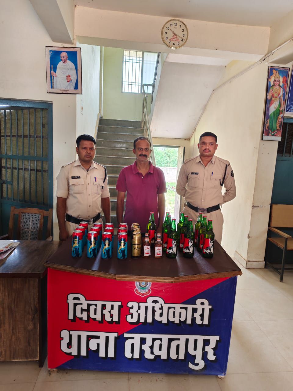 आरोपी के कब्जे से 05 नग गोवा स्पेशल शराब, 10 नग शिम्बा बियर, 12 नग मेडोसा बियर केन, 03 नग बटवाईजर बियर केन कुल मात्रा 14.9 लीटर कुल कीमती लगभग 5490 रूपये जप्त।