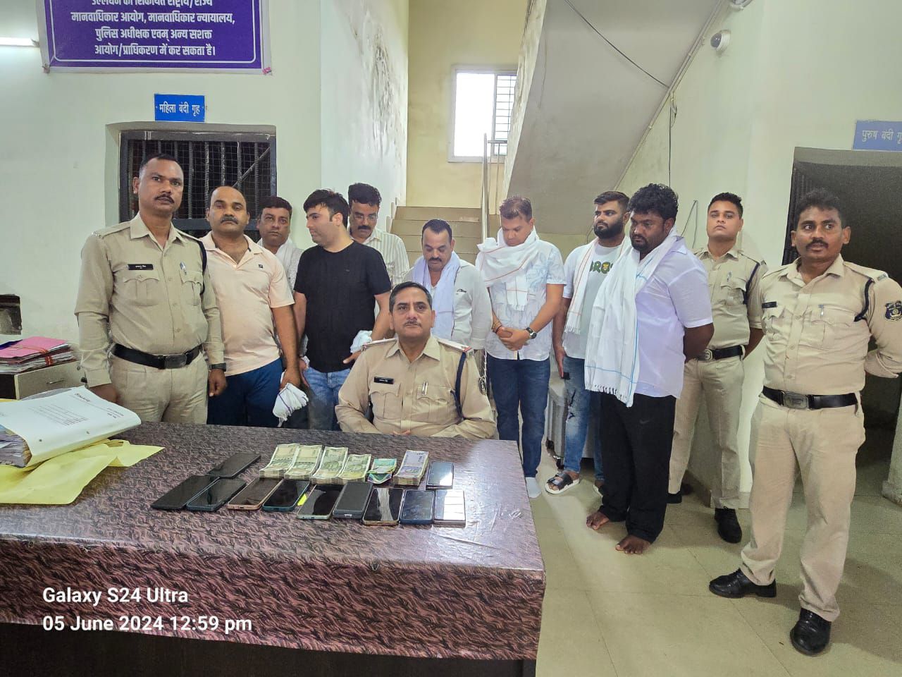 जिसकी सूचना पर मुखबीर पंचनामा तैयार कर गवाहों को नोटिस तामिल कर साथ में लेकर हमराह स्टाफ के साथ में उक्त स्थान में जाकर रेड किये तो 01. रामेश्वर गुपता पिता स्व कृष्ण कुमार गुप्ता उम्र 35 वर्ष सा. गनियारी थाना कोटा जिला बिलासपुर 02. राजू सोनी पिता बालाराम सोनी उम्र 50 वर्ष सा.जबड़ापारा सरकंडा थाना सरकंडा 03. टंकेश साहू पिता सोनू राम साहू उम्र 45 वर्ष सा. नगरौड़ी थाना चकरभांटा 04.असगर अली पिता मोह. साकिर उम्र 42 वर्ष सा. ताज होटल के पास देवरीखुर्द थाना तोरवा 05. अमित वाधवानी पिता परस वाधवानी उम्र 39 वर्ष सा. सिंधी कालोनी बिलासपुर थाना सिविल लाईन्स 06. नितीन हरपाल पिता विद्याचंद हरपाल उम्र 34 वर्ष सा.सिंधी कालोनी बिलासपुर थाना सिविल लाईन्स 07. श्याम जायसवाल पिता फौदूरा जायसवाल उम्र 42 वर्ष सा. भरनी थाना सकरी 08. विकास गुप्ता पिता वी के गुप्ता उम्र 44 वर्ष सा. जूना बिलासपुर के द्वारा हाली डे होटल के पास में तास पत्ती पर रूपये का दांव लगाकर काटपत्ती जुआ खेलते हुए मिले जिनके फड़ से 01 लाख 65 हजार रूपये ,11 नग मोबाइल , 52 पत्ती तास तथा पास से 88 हजार रूपये नगदी जुमला 02 लाख 53 हजार रूपये को गवाहों के समक्ष मुताबिक जप्ती पत्रक के जप्त कर कब्जा पुलिस लिया गया। आरोपियों के विरूद्ध जुआ प्रतिषेध अधिनियम के तहत कार्यवाही कर आरोपीगणों को पकड़कर अपराध क्रमांक 0/24 धारा 3(2) छ.ग. जुआ प्रतिषेध अधिनियम 2022 की देहाती नालसी कायम कर मय माल जप्त माल ,मुलजिम एवं हमराह स्टाफ के थाना वापस आया बाद देहाती नालसी पर से नंबरी अपराध कायम कर विवेचना में लिया गया। आरोपियों के विरूद्ध धारा 151, 107, 116(3) जा. फौ. के तहत पृथक से प्रतिबंधात्मक कार्यवाही की गई।