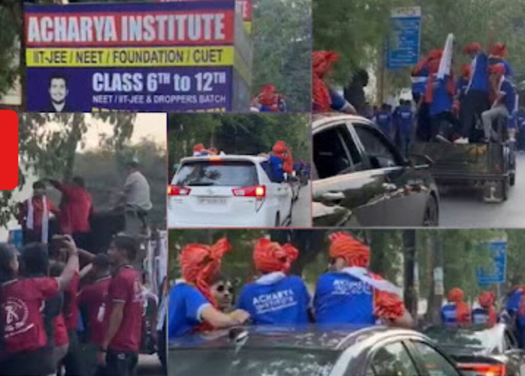 बिलासपुर- सफलता मिलना अच्छी बात है लेकिन सफलता के नशे से दूर रहना उतना ही कठिन, और बात जब शिक्षा की आती हो तो शिक्षकों की जिम्मेदारी और भी अधिक बढ़ जाती है लेकिन बिलासपुर में ठीक इसका उलट देखने को मिला जहां सफलता का नशा प्राइवेट इंस्टिट्यूट के सर चढ़कर बोलने लगा.. इसी नशे में चूर होकर शिक्षकों ने छात्रों को नियम सीखने के बजाय उन्हें नियम की धज्जी उड़ाने के लिए छोड़ दिया, दरअसल, बिलासपुर के आचार्य इंस्टीट्यूट द्वारा बच्चों के सफल होने के बाद रैली का आयोजन किया गया था ,लेकिन इस दौरान जमकर लापरवाही प्रबंधन द्वारा देखने को मिली. रैली के दौरान कार के दरवाजे से छात्र लटकते नजर आए.. वहीं इस रैली में भी इंस्टीट्यूट द्वारा जमकर यातायात के नियमों की धज्जियां उड़ाई गई.