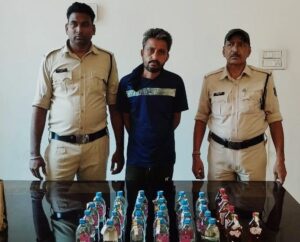 ,, पुराना बस स्टेंड के पास ड्राई डे पर जिले में अवैध मदिरा की खरीदी बिक्री की शिकायत एवं इससे बढ़ते अपराध एवं चेतना अभियान के तहत रोकथाम एवं कड़ी कार्यवही हेतु दिनांक 22.जून.24 को ड्राई डे होने पर वरिष्ठ अधिकारियों के द्वारा आवश्यक दिशा निर्देश दिये गये है जिनके पालन में मुखबीर से सूचना मिलने पर एक व्यक्ति पुराना बस स्टैण्ड के पास ठेला के पास सफेद बोरी के झोले में अत्यधिक मात्रा में शराब रखा है एवं बिकी कर रहा है जिसे पुछने पर अपना नाम मृणाल केशरवानी उर्फ बाबू पिता स्व. विष्णु केशरवानी उम्र 34 वर्ष निवासी पुराना बस स्टैण्ड निराला नगर तारबाहर बिलासपुर के पास प्लास्टिक की बोरी के झोले में रखे 30 पाव देशी मदिरा 2700 रू एवं 06 पाव जम्मु अंग्रेजी 780 रू जुमला 3480 रू. का मिला मौके पर समक्ष गवाहों के आबकारी एक्ट के तहत आरोपी से प्लास्टिक की बोरी में रखे कुल 36 पाव मदिरा जप्त कर आरोपी को गिरफ्तार कर माननीय न्यायालय में पेश किया जाता है।