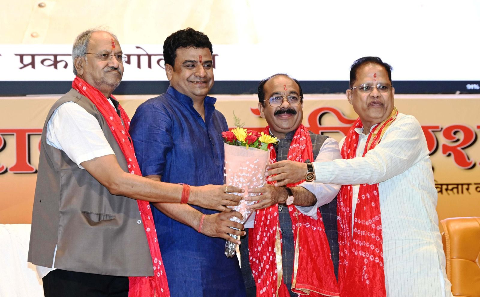 बिलासपुर,,,उप मुख्यमंत्री अरुण साव आज छत्तीसगढ़ सराफा एसोशिएशन के नवनिर्वाचित पदाधिकारियों के शपथ ग्रहण और आशीर्वाद समारोह में शामिल हुए। उन्होंने रायपुर के साइंस कॉलेज परिसर स्थित पंडित दीनदयाल उपाध्याय ऑडिटोरियम में आयोजित समारोह में एसोशिएशन के वेब पोर्टल और क्यूआर कोड को लॉन्च किया। सांसद बृजमोहन अग्रवाल और विधायक अमर अग्रवाल भी समारोह में विशिष्ट अतिथि के रूप में शामिल हुए। बिलासपुर उच्च न्यायालय में अधिवक्ता और बॉर काउंसिल ऑफ इंडिया के कार्यकारी सदस्य सुनील ओटवानी ने छत्तीसगढ़ सराफा एसोशिएशन के नवनिर्वाचित अध्यक्ष, महासचिव और कोषाध्यक्ष को शपथ दिलाई।