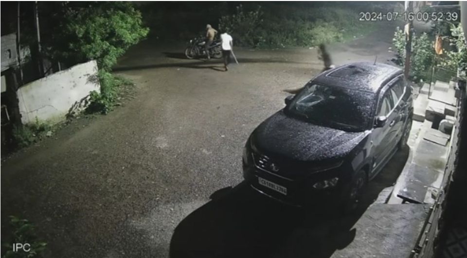 बिलासपुर,,,, मंगला चौक स्थित देर रात करीब 1:00 बजे तीन नकाबपोशों ने कॉलोनी के पास खड़ी टाटा हैरियर ब्लैक कलर क्रमांक C.G 10 B.L 3366 गाड़ी को पत्थर एवं डंडे से मार कर उसका शीशा तोड़ दिया गया। CCTIVI फुटेज मे भी दिखाई दे रहा है कि किस तरह तीन नकाबपोश गाड़ी में तोड़फोड़ कर भाग रहे हैं। तीनो नकाबपोश किस तरह से अपने काम को अंजाम दे रहे हैं। यह CCTIVI फुटेज में साफ नजर आ रहा है। इस घटना के बाद गाड़ी मालिक आशुतोष तिवारी ने सिविल लाइन थाने में शिकायत की है। तोड़फोड़ की यह घटना CCTIVI कैमरे में कैद हो चुकी है, जिससे शायद पुलिस आरोपियों तक जल्द ही पहुंच पाए। आरोपियों ने इस घटना को क्यों अंजाम दिया, यह उनके पकड़े जाने पर ही पता चलेगा। अनुमान लगाया जा रहा है कि किसी रंजिश की वजह से इस घटना को अंजाम दिया गया होगा।
