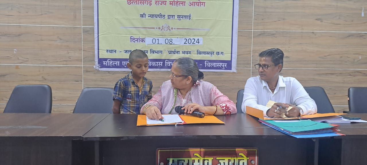 एक अन्य प्रकरण में उपभपक्ष उपस्थित आवेदिका ने बताया कि उसका पति दूसरी शादी कर लिया है अनावेदक ने यह बात भी स्वीकार किया गया है कि दूसरी महिला उसके साथ रहती है उसका मोबाईल नम्बर भी अनावेदक के द्वारा दिया गया है। उभयपक्ष की संतान जो 08 साल का है उससे पुछा गया तो वह बोला कि वह अपने मम्मी-पापा के साथ रहना चाहता है और वह दूसरी महिला को जेल भेजने की बात कही है। अनावेदक ग्राम हरदी में हनुमान ट्रेडर्स में हेल्पर का काम करता है व अनावेदक के द्वारा लगतार झूठ बोलते हुए आयोग को गुमराह कर रहा है। ऐसी स्थिति में प्रकरण आगामी सुनवाई रायपुर में रखा जाता है।