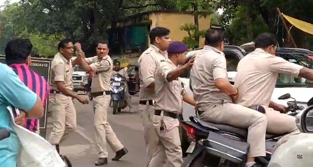 बिलासपुर,,, सिविल लाईन थाना क्षेत्र में शुक्रवार दोपहर जेल रोड फूल चौक के पास दो वर्दी धारी आपस में मारपीट करते नजर आए। इस नजारे को जिसने देखा, वह हैरान रह गया। जिनसे कानून व्यवस्था बनाए रखने की उम्मीद की जाती है, वे ही सड़क पर कानून तोड़ते नजर आए। जानकारी हुई कि रक्षित केंद्र के आरक्षक विष्णु चंद्रा ने रक्षित केंद्र के ही एक अन्य आरक्षक सुनील सिंह को फोन कर जेल चौक के पास मिलने बुलाया और पुराने विवाद को लेकर दोनों मारपीट करने लगे।