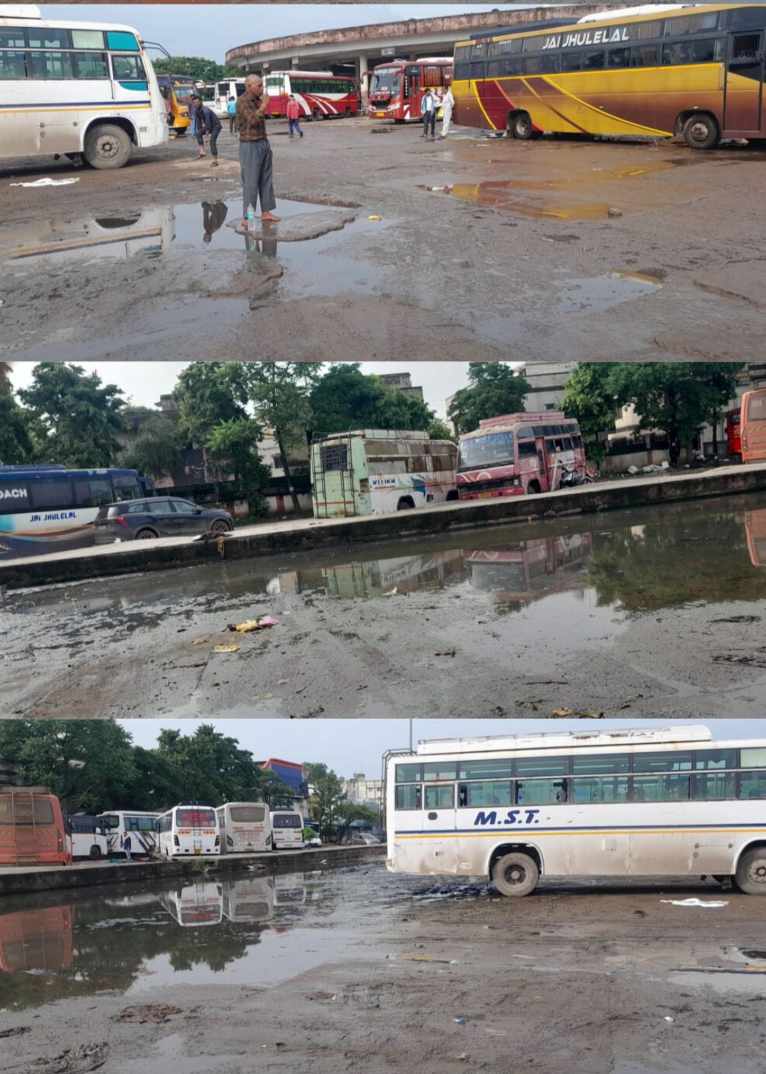 बिलासपुर,,, न्यू हाईटेक बस स्टैंड बना कीचड़ और गंदगी का घर छत्तीसगढ़ के उपमुख्यमंत्री अरुण साव के क्षेत्र का यह हाल नगर निगम की घोर लापरवाही देखने वाली बात की क्या इस ख़बर के बाद नगर निगम हाईटेक बस स्टेंड की साफ सफाई में ध्यान देता है! की नही जगह जगह गड्डे जल भराव कीचड़ गंदगी से भरा हुआ है!