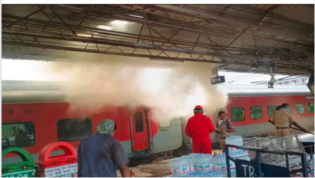 घटना के बारे में मिली जानकारी के अनुसार, ट्रेन शनिवार शाम 4:10 बजे कोरबा से रवाना हुई थी और रविवार सुबह 6:10 बजे विशाखापट्टनम पहुंची थी। ट्रेन प्लेटफॉर्म नंबर 4 पर खड़ी थी और 9:45 बजे यार्ड के लिए रवाना होनी थी। इसी बीच ट्रेन से धुआं निकलता देख आसपास के लोगों ने शोर मचाया और तुरंत रेलवे सुरक्षा बल (RPF) को सूचित किया।