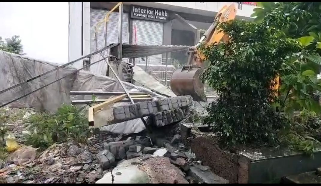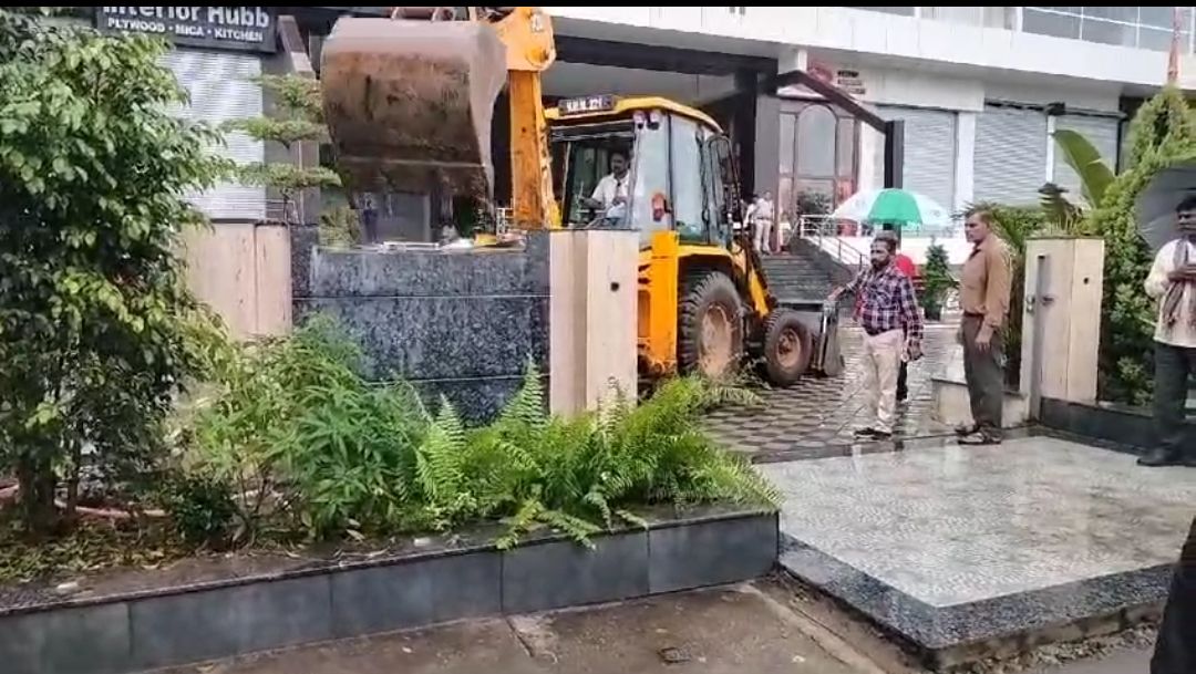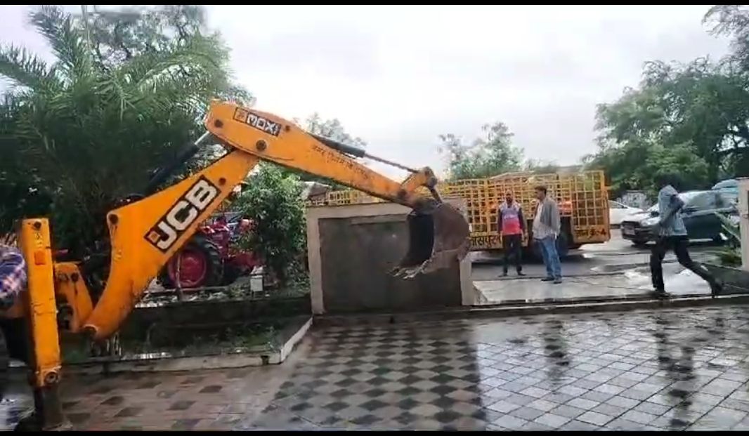 इसके बाद राजस्व और नगर निगम की संयुक्त टीम ने लगातार नोटिस के बाद भी अतिक्रमण नहीं हटाए जाने पर विनायक प्लाजा निर्माण पर बुलडोजर चलाया है।आज सुबह की कार्रवाई में विनायक प्लाजा के नाला की तरफ की दीवार को टीम ने तोड़कर गिरा दिया है। जानकारी देते चलें कि पिछले कई दिनों और महीनों से प्रशासन की तरफ से विनायक प्लाजा मालिक को अतिक्रमण हटाने का निर्देश दिया गया। बावजूद इसके किसी प्रकार का कदम नहीं उठाया गया। कलेक्टर के विशेष निर्देश और निगम आयुक्त के आदेश पर अतिक्रण दस्ता अलसुबह अतिक्रमण हटाने का काम शुरू कर दिया है।