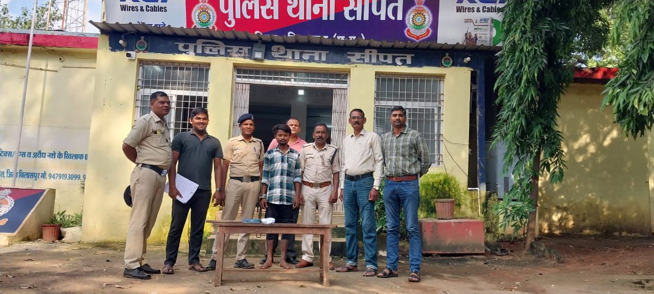 विलासपुर,,, पुलिस अधीक्षक बिलासपुर रजनेश सिंह द्वारा ऐसे गंभीर मामलों में लगातार कड़ी कार्यवाही करने का दिया गया है निर्देश पर सीपत पुलिस के सक्रियता एवं तत्परता से आरोपी का किया गिरफ्तार 08.अगस्त को ग्राम कुली में प्रकाश मैत्री के द्वारा अपनी पत्नी रिंकी मैत्री पर झगडा विवाद होने से धारदार टंगिया से हमला कर चेहरा, गला में गहरा चोंट पहूंचाने से मृत्यु हो गया है। जिस पर थाना सीपत में अपरध क्रमांक 378/2024 धारा 103(1) बीएनएस की अपराध पंजीबद्ध कर विवेचना में लिया गया है। अपराध की गंभीरता को देखते हुये आरोपी की पतासाजी हेतु पुलिस अधीक्षक के निर्देश पर अतिरिक्त पुलिस अधीक्षक श्रीमती अर्चना झा और उप पुलिस अधीक्षक मुख्यालय श्री उदयन बेहार मार्गदर्शन में टीम गठित कर आरोपी प्रकाश मैत्री को हिरासत में लिया गया। आरोपी प्रकाश मैत्री शराबी था दिनभर शराब पीता रहता था जिससे परेशान होकर रिंकी मैत्री अपनी मायके में आकर रह रही थी। दिनांक घटना को प्रकाश मैत्री अपनी पत्नी के मायके घर ग्राम कुली आया था। प्रकाश मैत्री दिनांक घटना को पारिवारिक विवाद होने से गुस्से में आकर अपनी पत्नी को धारदार टंगिया से हमला कर चेहरा, गला में गहरा चोंट पहूंचाकर हत्या करना स्वीकार करने पर आरोपी को गिरफ्तार कर न्यायिक रिमांड पर भेजा गया है।