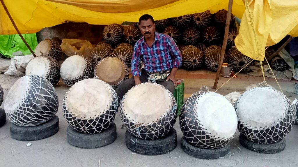 अरपा नदी के रपटा पुल के पास चौपाटी में नगाड़ा बेचने वाले अपनी दुकान सजा रहे है। यहां पर वर्षों से नगाड़े की दुकान लगती है। यहां पर खैरागढ़ और डोंगरगढ़ से नगाड़ा बेचने वाले पहुंचते है। होली पर्व को अब कुछ ही दिन शेष है। ऐसे में होली पर्व की तैयारी चल रही है। रंग-गुलाल की दुकानें लगनी शुरू हो गयी है। इसी बीच शहर में नगाड़ों ने भी दस्तक दे दी है। शनिचरी रपटा के पास 100 रूपये से लेकर 3000 रूपये तक बड़े नगाड़े बिक रहे है। साथ ही नगाड़े की आवाज शहर की फिजा को होलियाना मुड में ला रही है। इसी वजह से नगाड़ों की बिक्री भी शुरू हो चुकी है। खैरागढ़ से नगाड़ा बेचने आए चैन सिंह ने बताया कि छत्तीसगढ़ में सबसे ज्यादा डिमांड खैरागढ़ के नगाड़ो के रहते है, होली के दौरान होने वाले फाग में नगाड़ा मुख्य वाद्य यंत्र होता है, ऐसे में नगाड़ों के बिना फाग की कल्पना नहीं की जा सकती है। इसी तरह होलिका के पास बैठकर नगाड़ा बजाने की प्रथा है, यह प्रथा अभी भी जीवित है। ऐसे में जैसे-जैसे होली पर्व नजदीक आती जाएगी, वैसे-वैसे ही इनकी बिक्री भी जोर पकड़ने लगेगी। मुंगेली से शनिचरी रपटा नगाड़ा लेने पहुंचे लोगों ने बताया कि मुंगेली क्षेत्र में नगाड़ों की कीमत बहुत अधिक है, इसलिए वे हर वर्ष बिलासपुर से ही नगाड़ा ले जाते हैं।